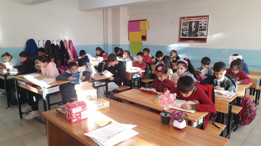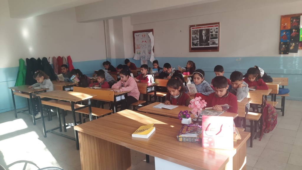 Okulumuzda '' HER OKUR BİR LİDER PROJESİ'' kapsamında her gün 20 dakika kitap okuyoruz.Bizimle beraber kitap okumak için velilerimizi okulumuza bekliyoruz.